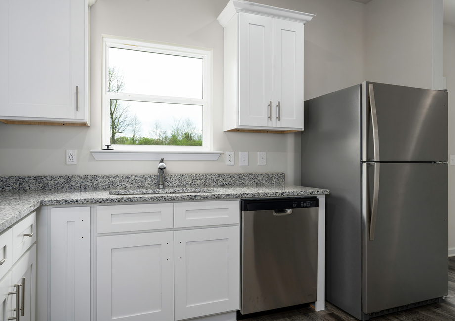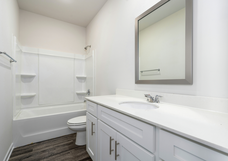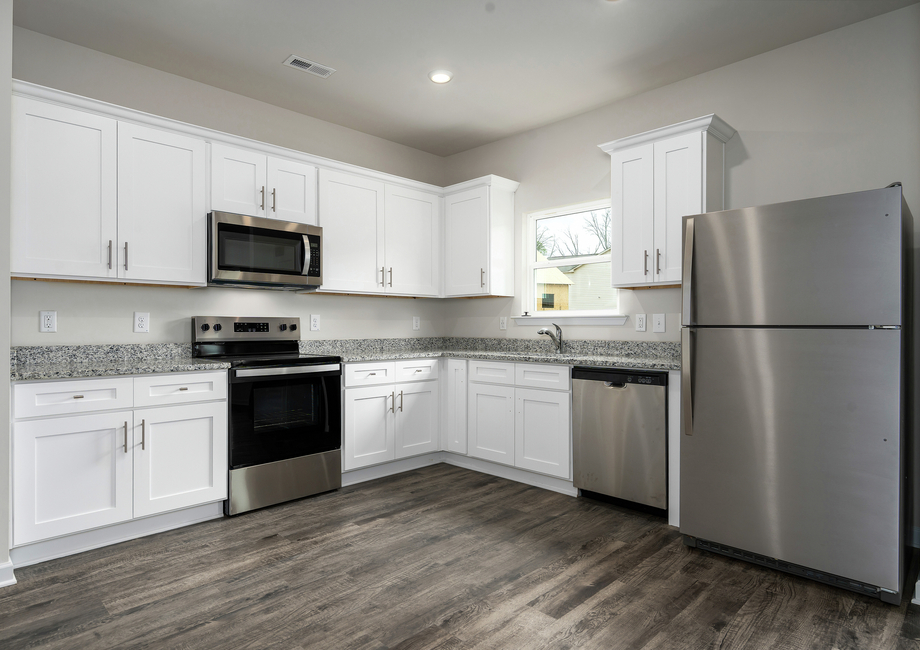 The kitchen of the Macon plan is a perfect place to gather as a family or host guests. The open layout is designed with functionality in mind and features plenty of storage space. What truly grabs your attention in this focal point of the home are the stunning granite countertops and stunning wood cabinets with crown molding. The look and feel of the kitchen space is enhanced even further by an undermount kitchen sink that includes a Moen® faucet, recessed lighting and a full suite of energy-efficient Whirlpool brand appliances.