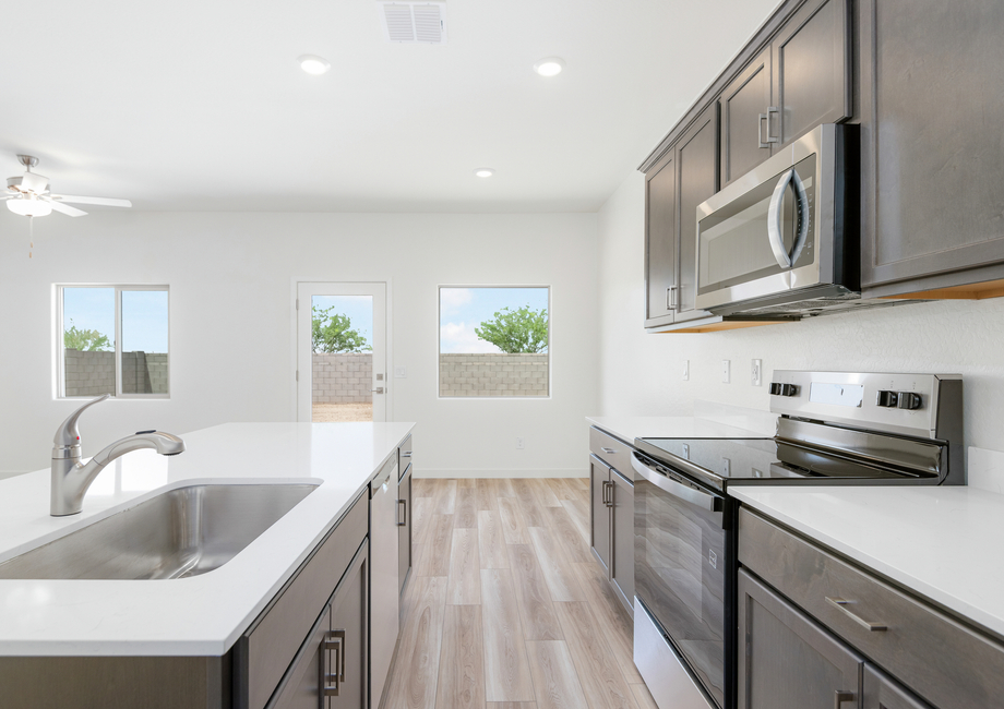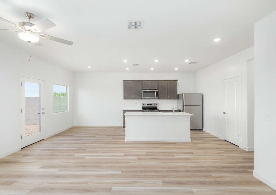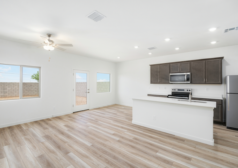 The three-bedroom, two-bathroom Ash plan at Bisbee Ranch offers you space to call your own! The inviting front porch leads you inside, where you discover an open-concept layout with a spacious family room, upgraded kitchen, and private bedrooms. The master suite provides peace and privacy, creating an exclusive environment to retreat to after a long day of work. You will love hosting get-togethers and making memories that last a lifetime in the Ash!
