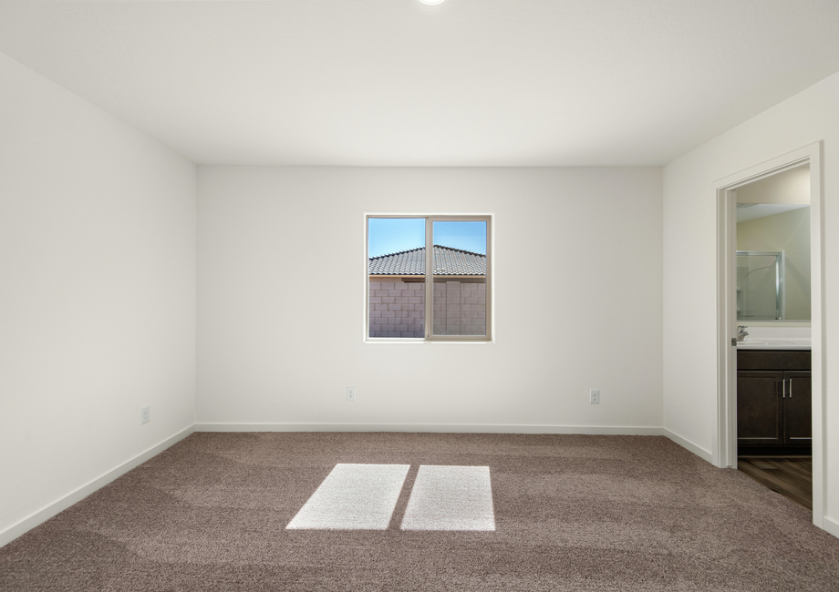 The private master bedroom suite in the Guadalupe floor plan is beautiful and spacious. Featuring windows that allow for plenty of natural light and a spacious walk-in closet, homeowners will fall in love with this bedroom.
