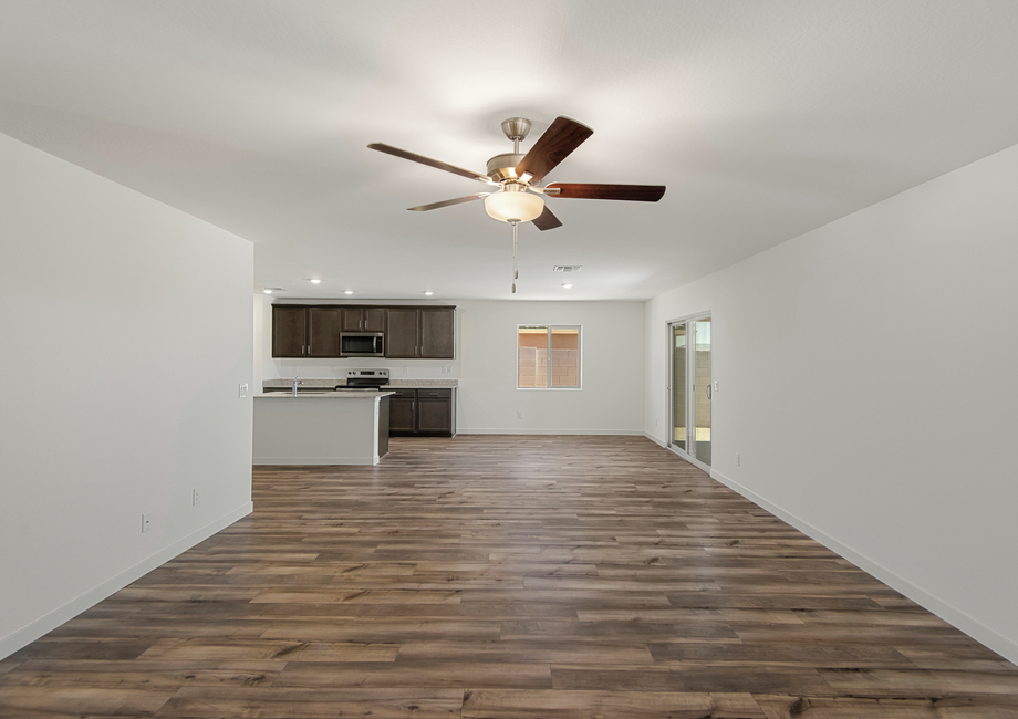 The Guadalupe floor plan is available now at an affordable price in the neighborhood of Ghost Hollow Estates located in Casa Grande, Arizona. This floor plan features three spacious bedrooms, a 2-car garage and a large covered back patio that is perfect for enjoying the outdoors in the comfort of your own home. The large living areas provide plenty of space for the whole family to enjoy and the chef-ready kitchen is a beautiful space where homeowners can enjoy cooking meals for friends and family alike! The spacious private master bedroom suite features windows for plenty of natural light.