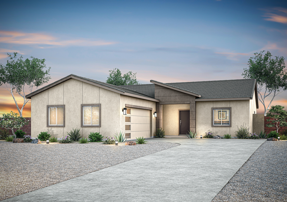 The Guadalupe floor plan is available now at an affordable price in the neighborhood of Ghost Hollow Estates located in Casa Grande, Arizona. This floor plan features three spacious bedrooms, a 2-car garage and a large covered back patio that is perfect for enjoying the outdoors in the comfort of your own home. The large living areas provide plenty of space for the whole family to enjoy and the chef-ready kitchen is a beautiful space where homeowners can enjoy cooking meals for friends and family alike! The spacious private master bedroom suite features windows for plenty of natural light.