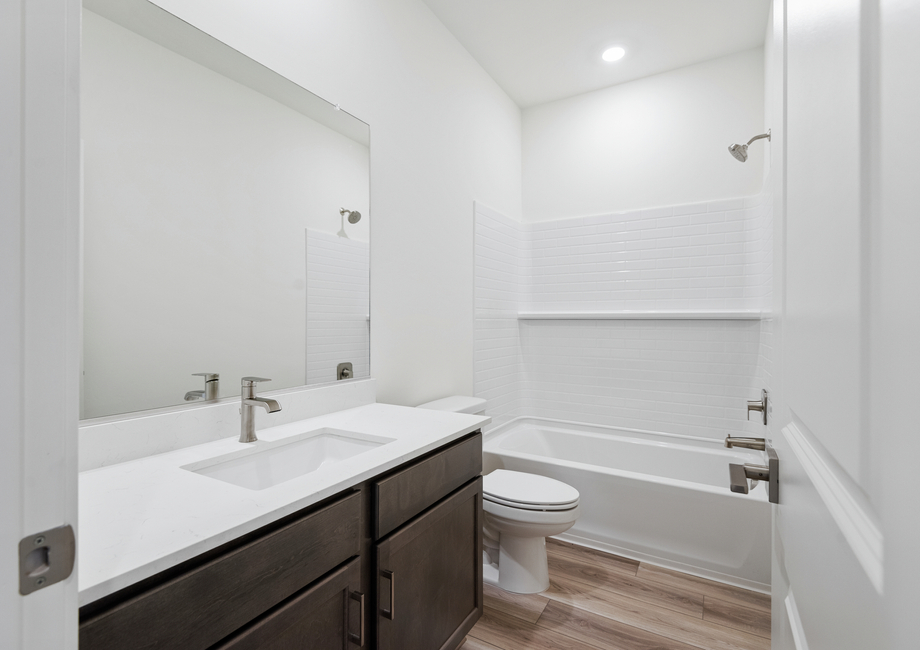 The Amado plan was created for convenience and efficiency. After parking inside of the two-car garage, you enter into the laundry room where you can toss your gym towel into the washing machine and kick off your shoes. Right around the corner is the master bedroom where you can easily change and relax after a long day of work.
