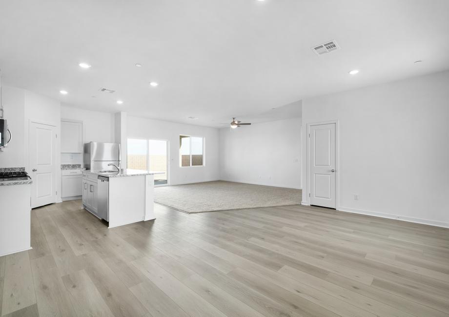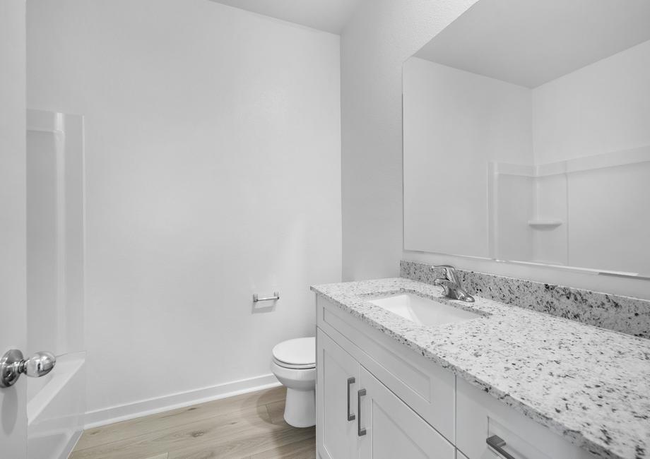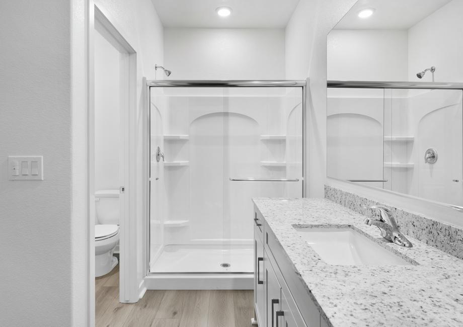 Tucked away from the family room and the two additional bedrooms is the sprawling master suite. Enjoy peaceful backyard views and a spa-like master bath in this spacious suite. Inside the master bath, you’ll find a beautiful vanity with plenty of countertop storage, an extended shower, as well as a huge walk-in closet.Designer-Selected Upgrades All Included