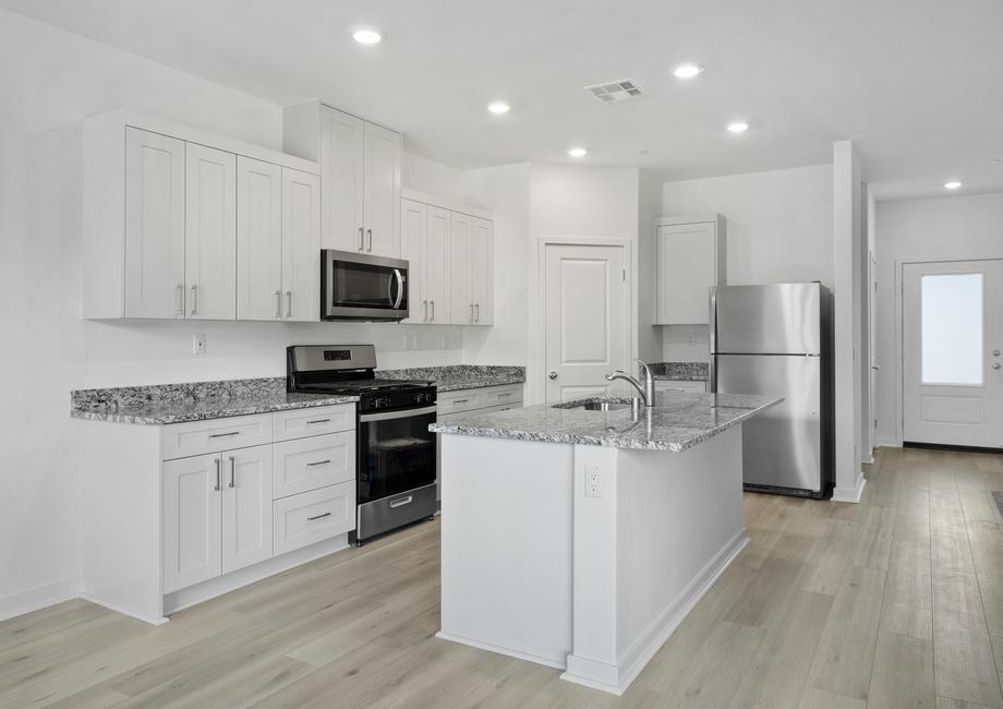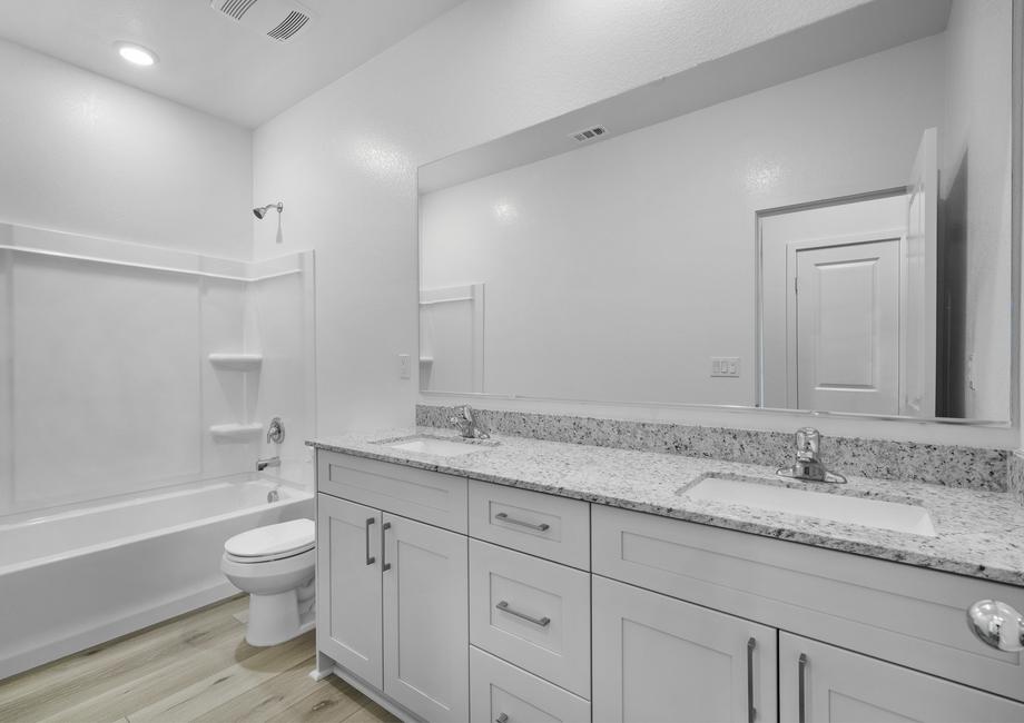 CompleteHome™ package, the Newport plan at Desert Willow Village is overflowing with impressive, included upgrades. Stainless steel Whirlpool® kitchen appliances, granite countertops, designer wood cabinetry, a Wi-Fi-enabled garage door opener, double-pane Low-E vinyl windows and a programmable thermostat are just a few of the incredible upgrades included at no extra cost to you. Additionally, every LGI home at Desert Willow Village comes with included solar panels, professional front yard landscaping and an attached two-car garage.