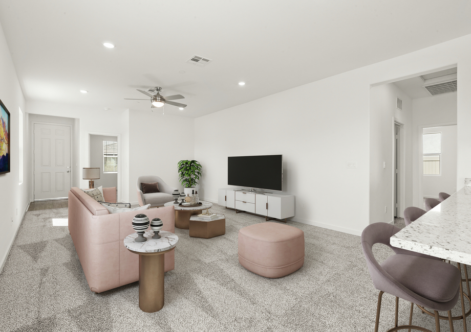 Enjoy relaxing on the covered back patio while watching your kids play safely in the fenced back yard. The covered back patio of the Bayside plan is perfect for entertaining and spending quality time with your family outdoors.