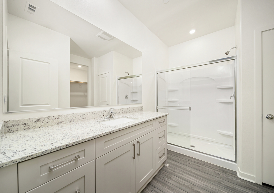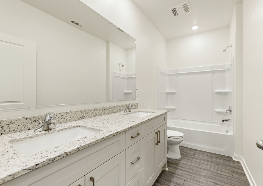 The Laguna plan at Northgate encompasses all of the designer upgrades included in LGI Homes’ CompleteHome™ package. Energy-efficient Whirlpool® appliances, including the refrigerator, glimmering granite countertops, stunning wood cabinets with crown molding, luxury wood-style flooring, solar panels and a Wi-Fi-enabled garage door opener are just a few of the remarkable upgrades that come standard in this home at no additional cost!
