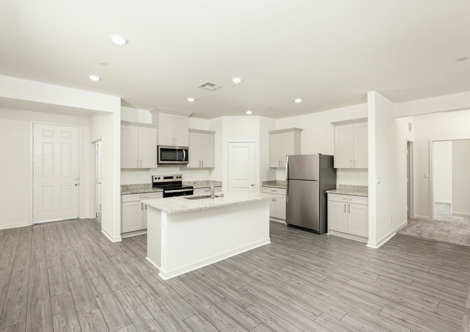 The Laguna plan at Northgate epitomizes the open floor plan. When you step through the front door, you can see all the way to the covered patio in the back! In the main area, the kitchen is completely open to the dining room and living area allowing your family to enjoy each other’s company regardless of the room you’re in!