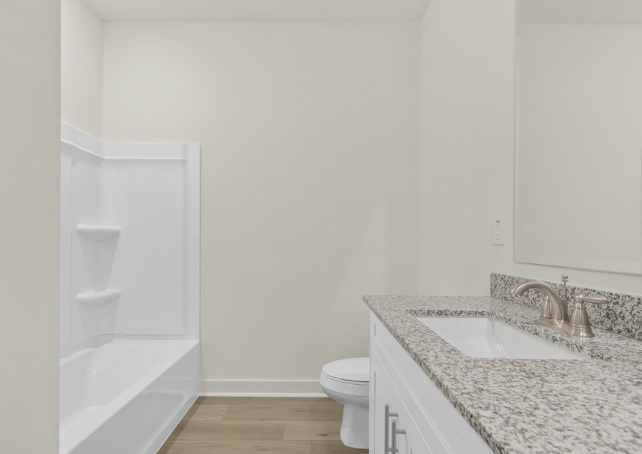 The La Jolla plan features a fully equipped, chef-ready kitchen designed for both functionality and style. With sprawling granite countertops, a full suite of premium stainless steel appliances, spacious wood cabinetry, and a generously sized pantry, this kitchen offers everything you need to create memorable meals. The open concept seamlessly connects the kitchen to the dining area, making it the perfect space for entertaining friends and family.Convenient and Spacious Laundry Room