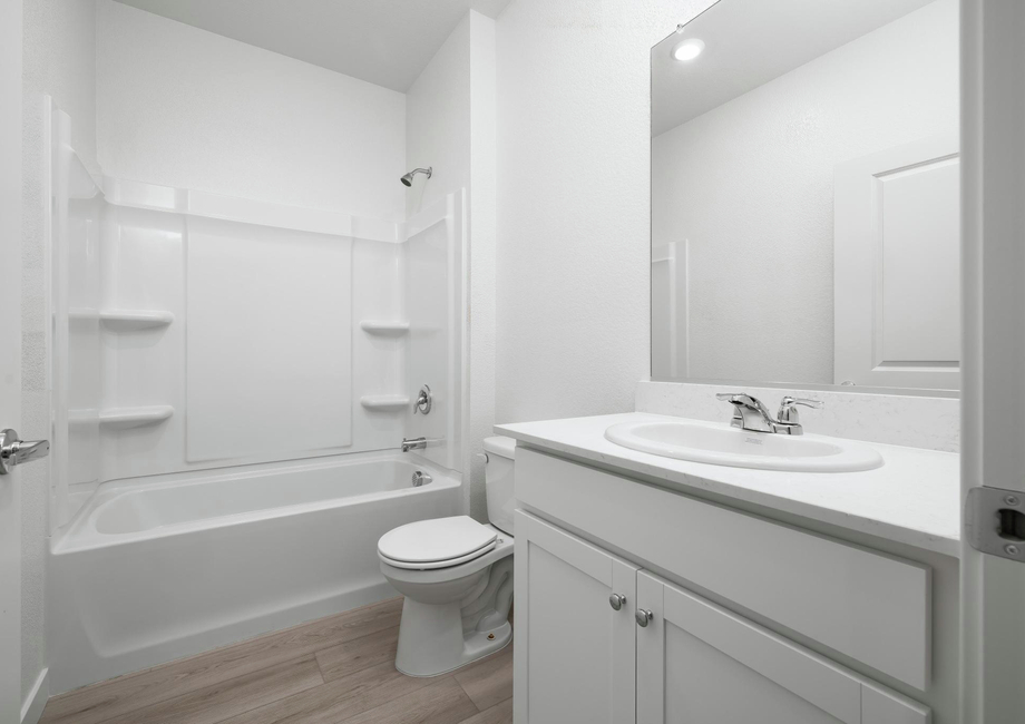 The Carson plan comes with all of the incredible upgrades encompassed in LGI Homes’ CompleteHome™ package. Stainless steel Whirlpool® appliances, premium hard surface countertops, a programmable thermostat, luxurious vinyl plank flooring and a Wi-Fi-enabled garage door opener are just a few of the designer upgrades that will come standard at no extra cost in this new construction home.