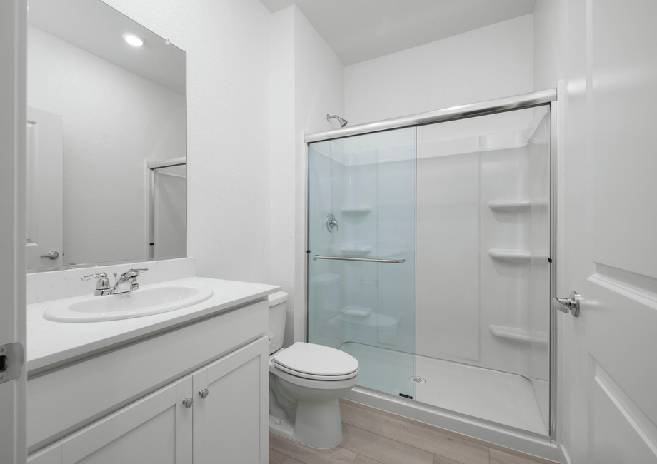 The Shelton plan at Camden Shire features LGI Homes’ CompleteHome™ interior package. Stainless steel Whirlpool® appliances, including the refrigerator, premium hard surface countertops, modern white cabinets with crown molding detail, luxurious vinyl-plank flooring and a Wi-Fi-enabled garage door opener are just a few of the remarkable upgrades that come standard in this new home. These upgrades are designed to add style and energy-efficiency further adding to the value of this exceptional new home.