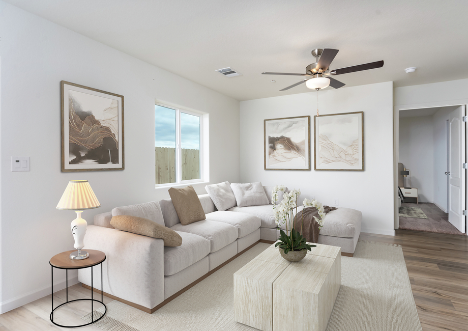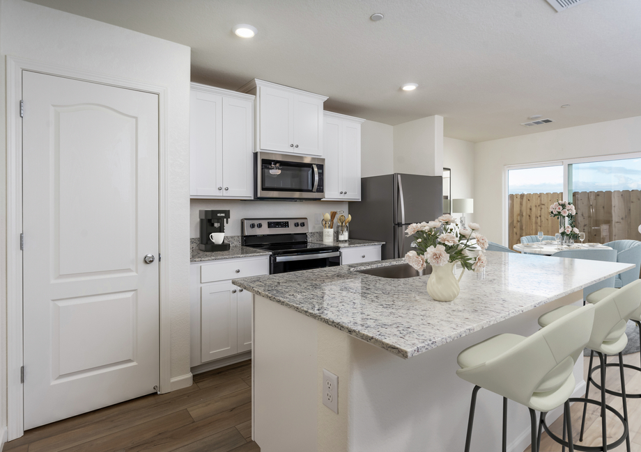 The Blazer plan is a charming single-story home available at Mattos Ranch near Modesto, California. This new construction home has three bedrooms, two full bathrooms and a spacious, open-concept layout. You’ll love how open this home is. The spacious family room is connected to the dining room and kitchen, creating a thoughtfully designed space for your family to create memories. In addition, this home has incredible curb appeal with a professionally landscaped front yard and beautiful exterior.