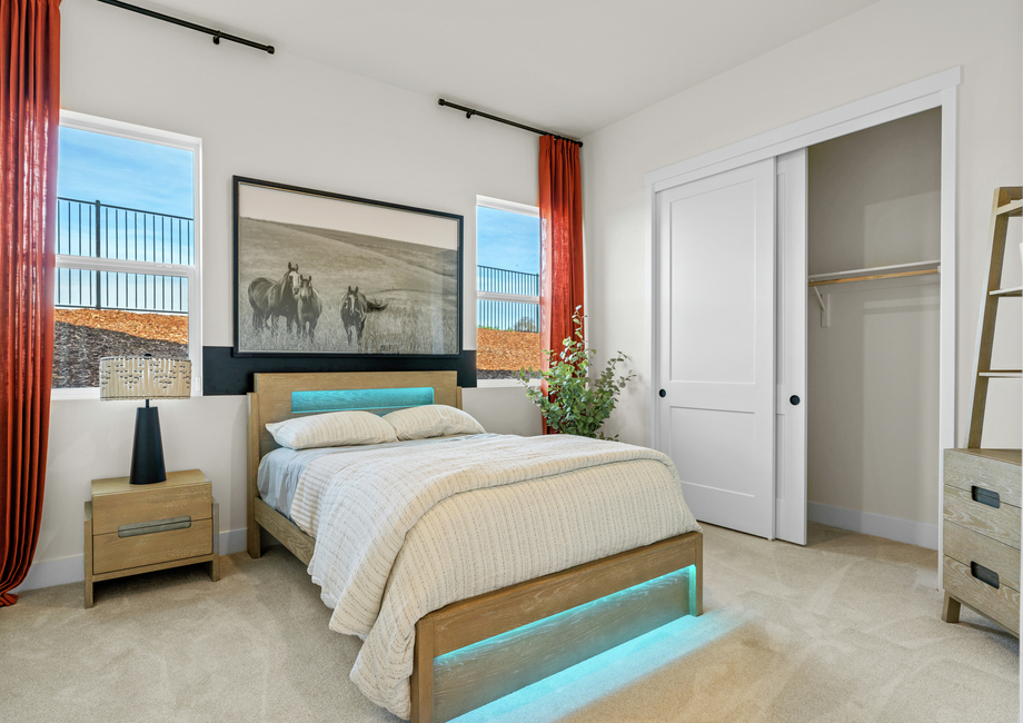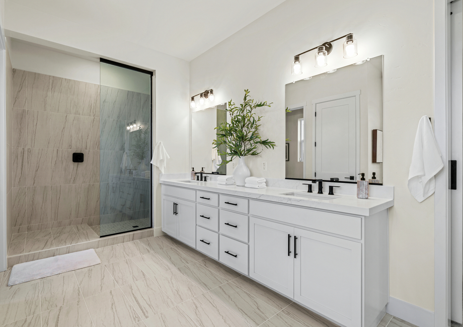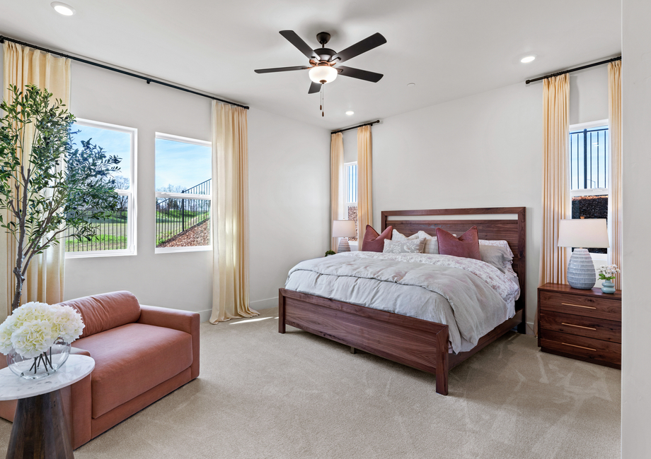 The heart of the Meadow is its open living and kitchen area, designed to make everyday life feel easy and connected. The family room flows naturally into the kitchen and dining space, creating an inviting spot for meals, conversations, and time together. A large island offers plenty of room for cooking, gathering, or helping hands, while nearby pantry and utility spaces keep things running smoothly. Natural light and views of the covered patio help the space feel bright, open, and relaxed.A Calm Comfortable Retreat