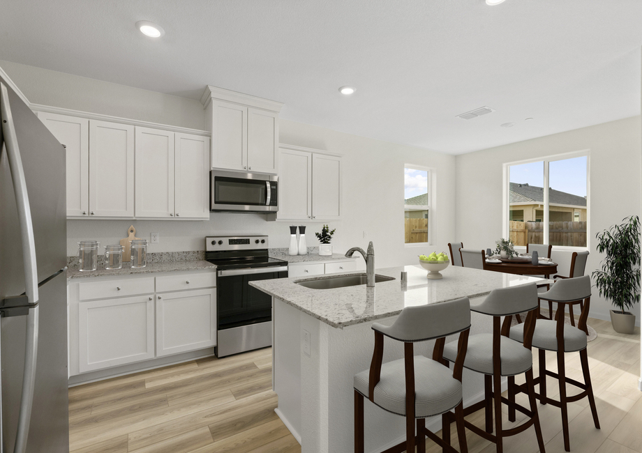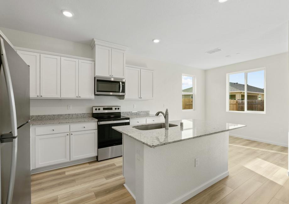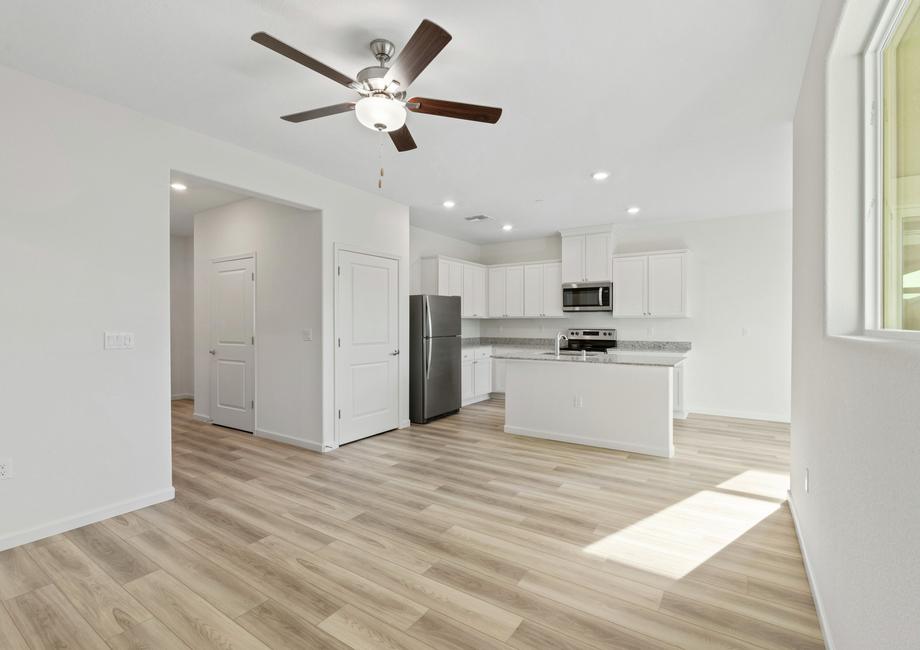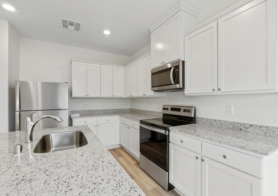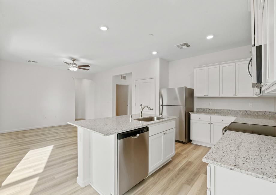 The incredible upgrades included in the CompleteHome™ package are sure to check off your wish list! A few of those features included with the Alpine floor plan in Summit at Liberty are high ceilings, a ceiling fan in the family room, a master bedroom with recessed ENERGY STAR lighting, and a complete suite of stainless steel Whirlpool® kitchen appliances.