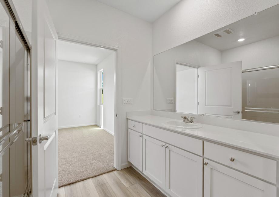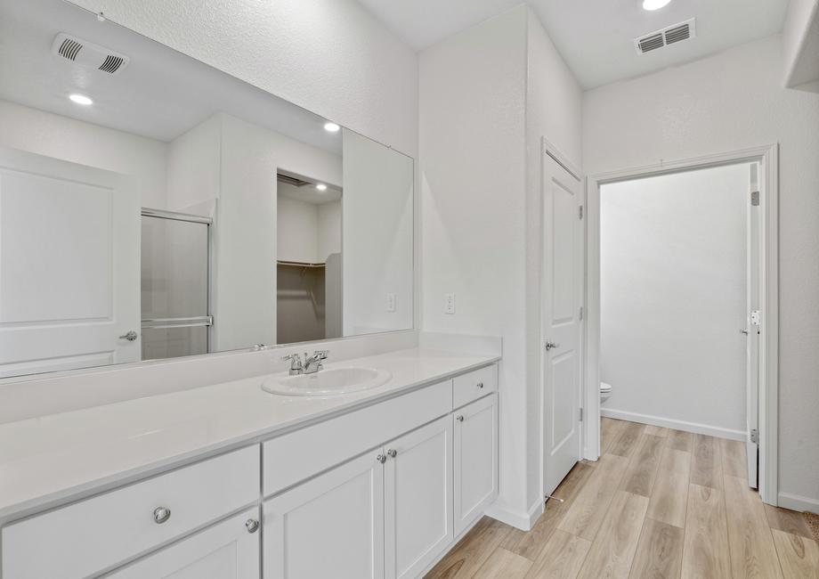 Start and end each day in your serene master suite! The spacious bedroom of the Alpine floor plan fills with natural light and will fit your favorite furniture. A large attached bath has a walk-in shower, sprawling vanity with tons of counter space and linen storage. You’ll also have plenty of space for all your clothes with the large walk-in closet!
