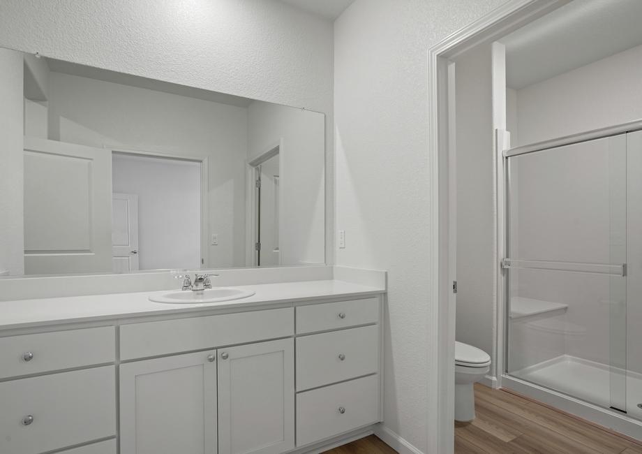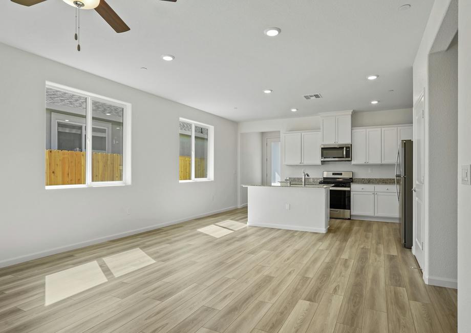 It’s easy to imagine inviting friends, both new and old, over to enjoy a game night or relax on the covered back patio. The incredible kitchen of the Baldwin floor plan in Summit at Liberty provides plenty of space for preparing snacks. At the same time, the open floor plan guarantees you won’t miss out on the fun. Several windows add to the welcoming atmosphere of the home!