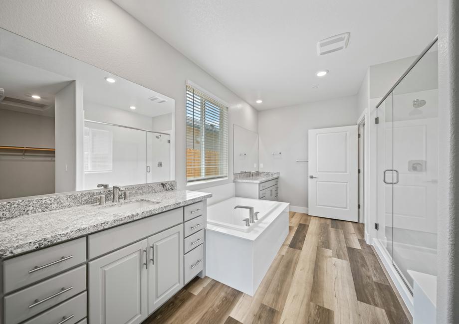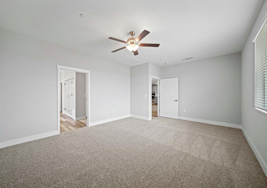 The master retreat of the Roosevelt plan has been carefully designed with your needs in mind. Enjoy great natural light with tranquil back yard views and plenty of space for your king-sized furniture. Additionally, the highly coveted en-suite master bath showcases double sinks, a huge tub, separate shower and a massive walk-in closet that conveniently connects to the laundry room.Luxurious Upgrades and Interior Features
