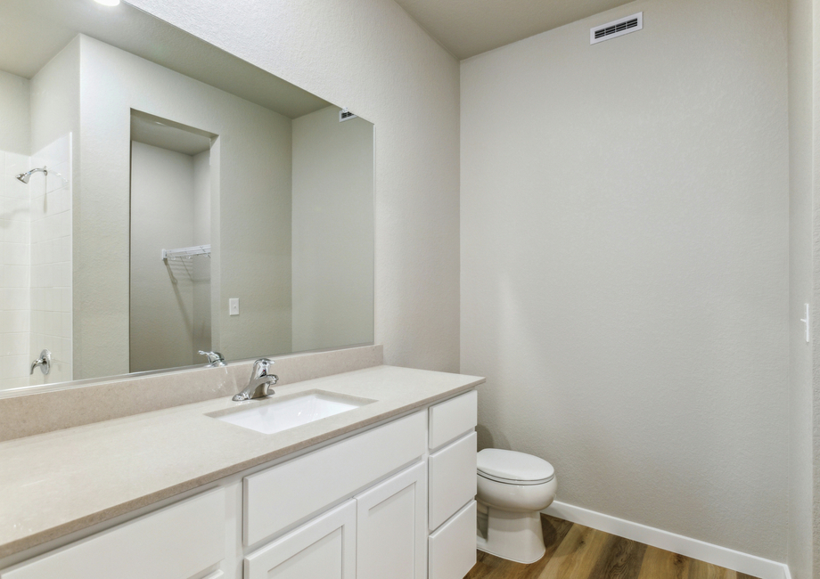 One of the most exciting features of this home is the CompleteHome™ package that comes standard. With this package, homeowners will be able to enjoy highly sought after upgrades and features at no extra cost. Spread throughout the home, you will find beautiful wood-style flooring, recessed lighting, designer wood cabinetry and quartz countertops that elevate the look and feel of the home. Some of the other upgrades include the covered back patio, Wi-Fi-enabled garage door opener and so much more!