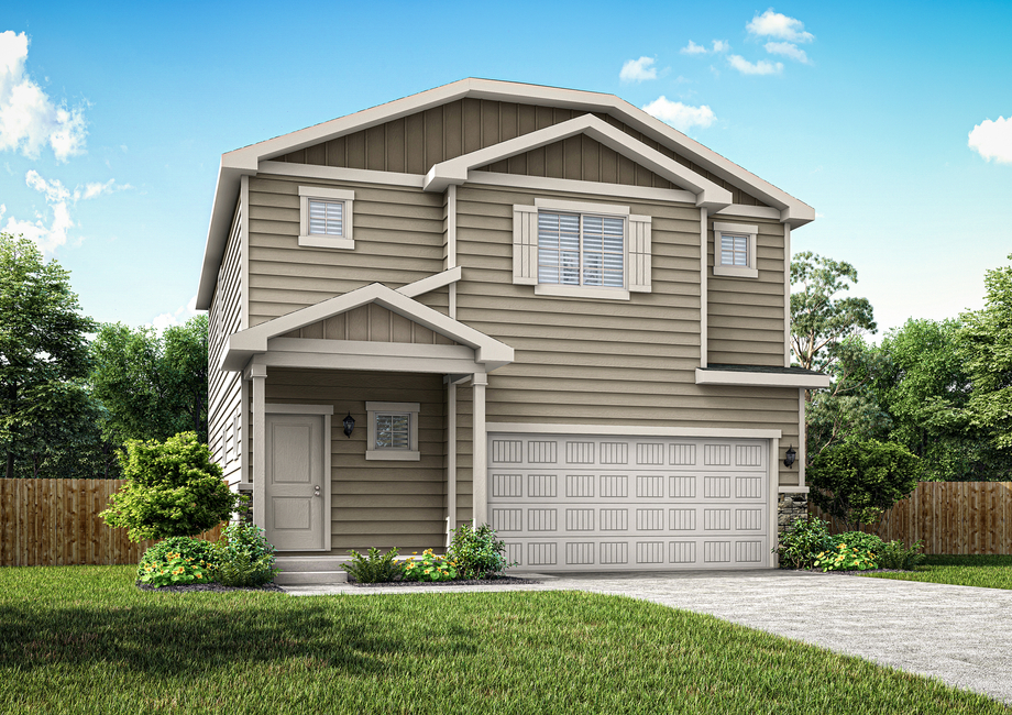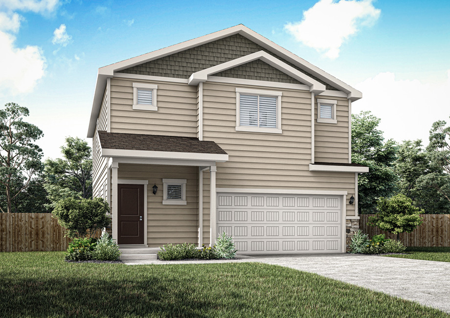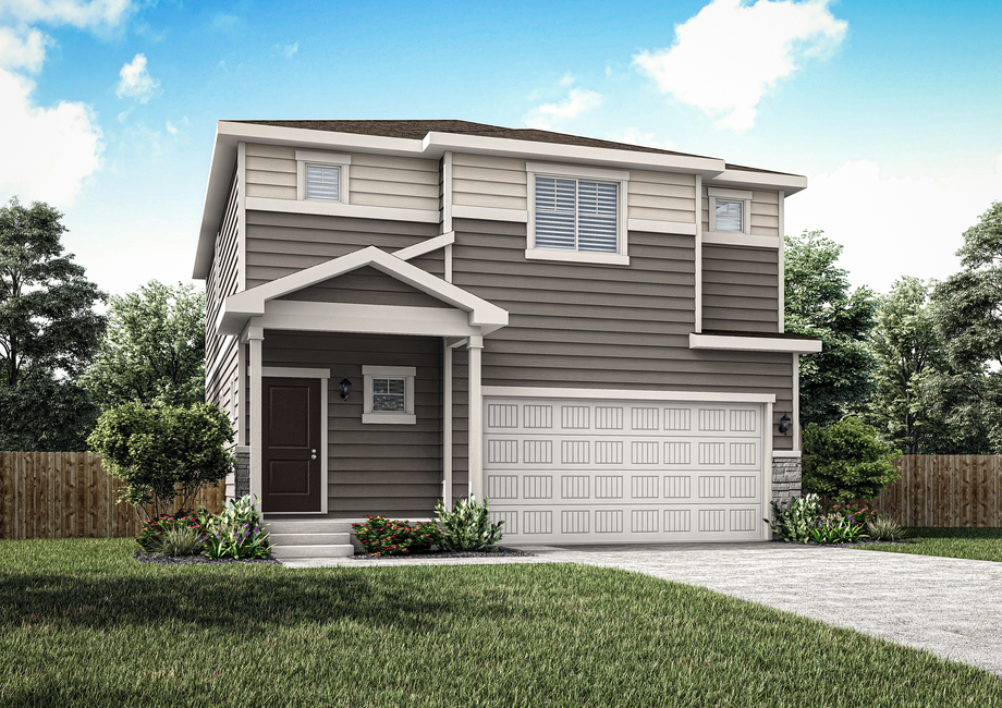 The Platte floor plan available in the peaceful community of Bennett Ranch has a charming exterior that you will be delighted to see each and every time you come home. You are welcomed by a large covered front porch, perfect for outdoor furniture and enjoying the outdoors! The siding adds style to the exterior, while the two-car garage is a functional addition that your family will appreciate.