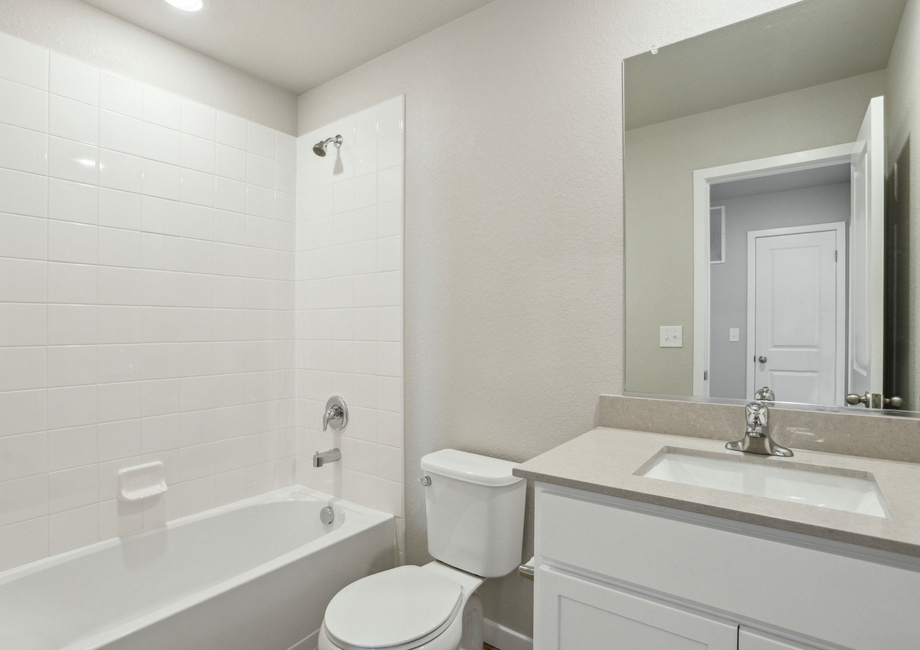 Available for quick move-in at Bennett Ranch, the two-story Sage plan features an open floor plan and gorgeous natural light! The great room and dining nook flow together to create one large area that is perfect for gathering friends and family. The stunning kitchen features quartz countertops and plenty of storage space as well as a full suite of Whirlpool®, energy-efficient appliances! Upstairs, you will find a spacious master suite with a walk-in closet and your additional bedrooms where you can get creative with how to use the space to fit your family’s unique wants or needs!