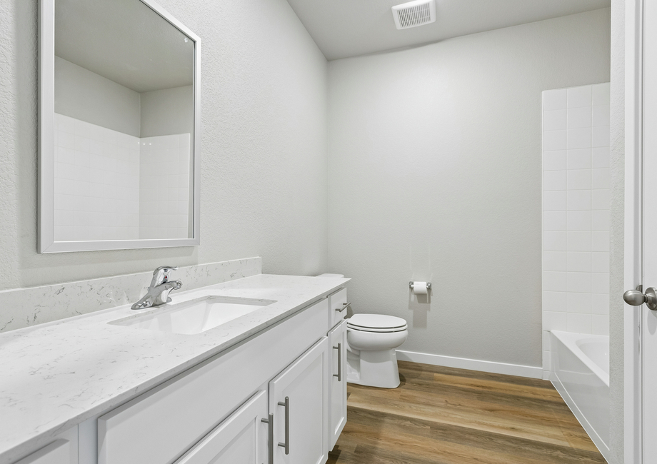 The Gunnison floor plan at Farmstead has all the impressive upgrades that come standard in LGI Homes’ CompleteHome™ interior package providing a multitude of features that add style, energy-efficiency and value into your brand-new home. Some notable upgrades are programmable thermostats, a convenient kitchen outlet with USB charging capability and a Wi-Fi enabled garage door opener.