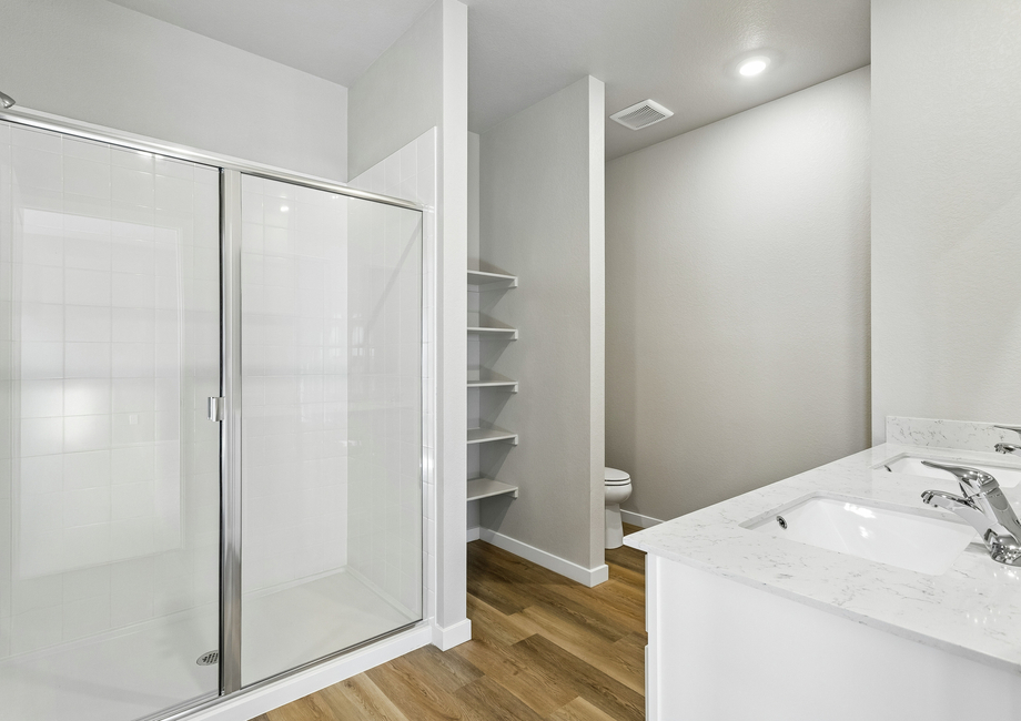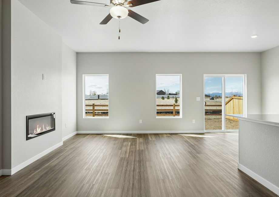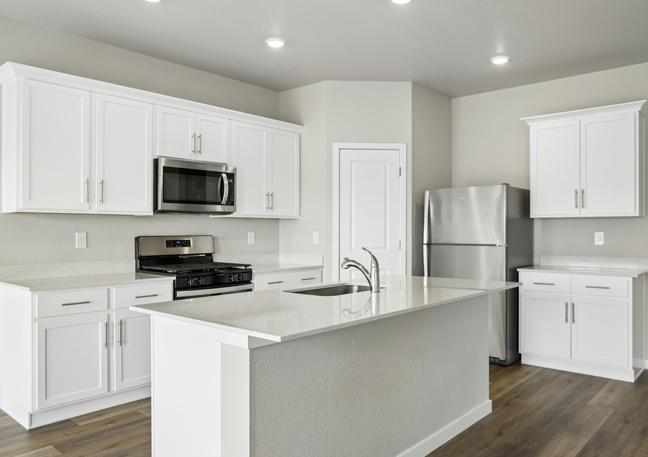 At the heart of the Gunnison is an expansive open entertaining area where the kitchen, dining room, and family room come together seamlessly. The kitchen features a large island that provides additional seating and prep space, while the nearby pantry keeps everything organized and within reach. This open layout is ideal for entertaining, family gatherings, or simply enjoying everyday moments at home.