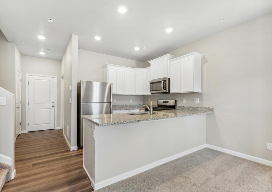 Furnished with our CompleteHome™ package, the Loveland plan at Johnstown Village comes with incredible upgrades at no additional cost. Energy-efficient Whirlpool® kitchen appliances, gorgeous granite countertops, designer wood cabinets, and a Wi-Fi-enabled garage door opener are just a few of the fabulous upgrades that make this townhouse the place you want to call home.