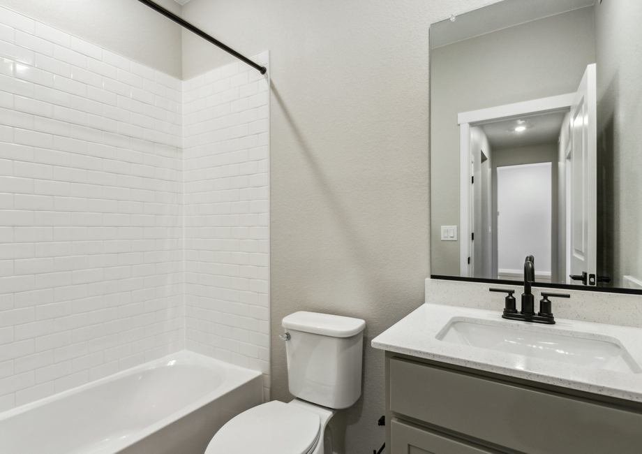 The Apex plan comes with our CompleteHome™ package, offering a variety of high-end finishes throughout the home. It features Moen® faucets, Kwikset® door hardware, and luxury vinyl flooring. The kitchen is equipped with beautiful quartz countertops, Whirlpool® appliances, and a stylish backsplash. Experience all these premium upgrades and more with the Apex plan at Second Creek Farm!