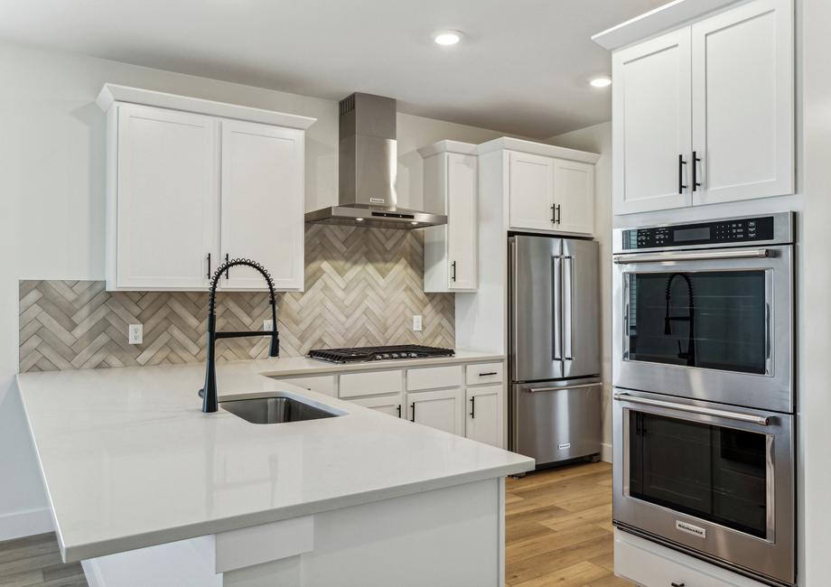 The wonderful Aspen floor plan boasts an array of upgrades, including stainless-steel KitchenAid® appliances, elegant quartz countertops, beautiful white wood cabinetry, matte black hardware and Moen® faucets throughout. With designer fixtures and features included, customers can skip the design center and move into their new home faster and hassle-free, enjoying luxurious upgrades from day one.
