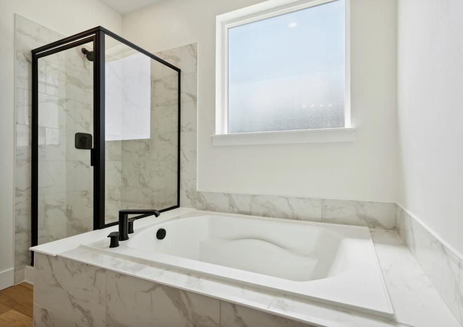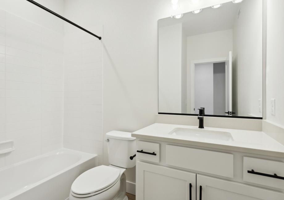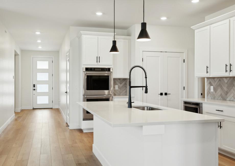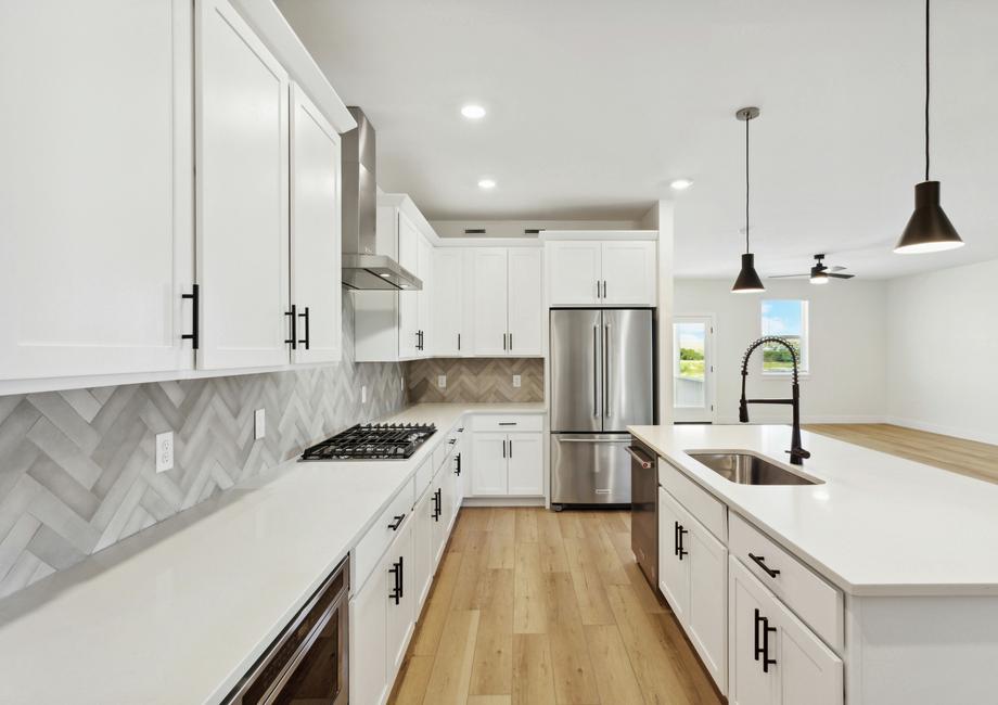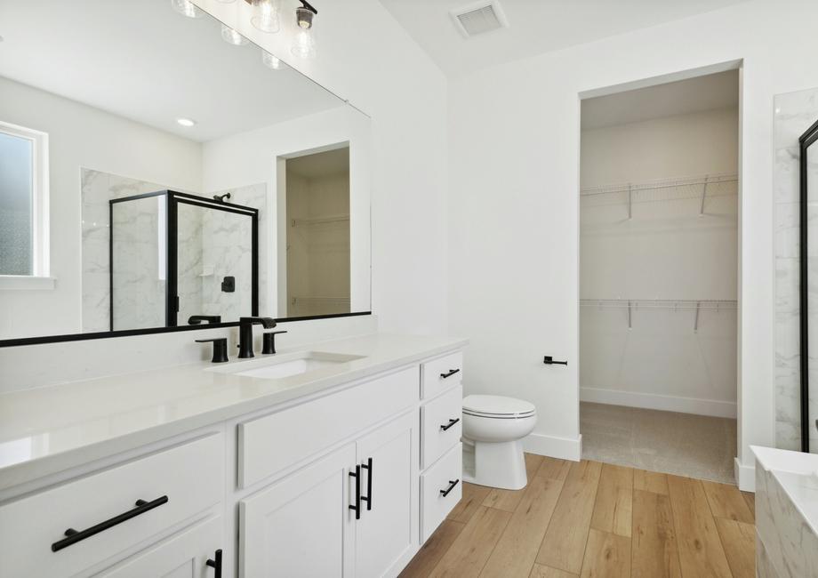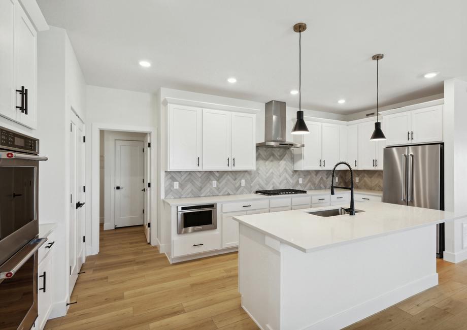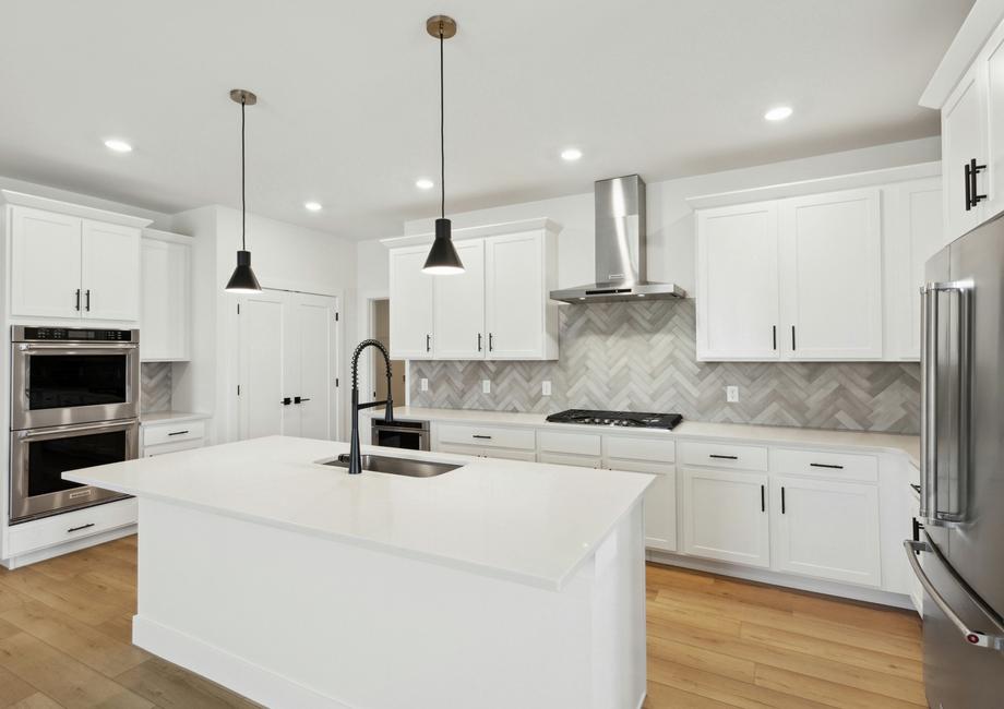 Skip the design center and enjoy an upgraded dream home faster when you buy a Terrata home. The Breckenridge floor plan boasts an array of desirable upgrades all included at no extra cost to you. With beautiful white cabinetry, double stacked ovens, a convenient microwave drawer, a sleek gas stove and gorgeous matte black hardware, the kitchen exudes style and functionality. With striking black fixtures, luxury vinyl plank flooring and more, you will fall in love with every inch of this gorgeous home.