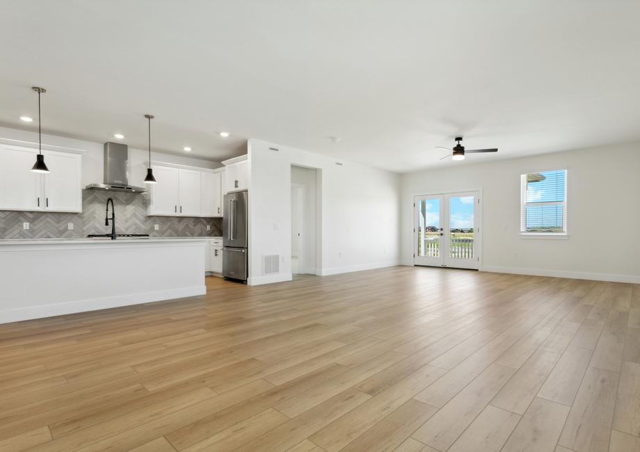 The Breckenridge impresses with its functional layout, characterized by an open concept design that seamlessly integrates a chef-inspired kitchen, an inviting family room and a cozy dining area. This thoughtfully planned arrangement encourages effortless flow and connectivity between key living spaces, fostering a sense of togetherness and ease of movement. Whether it's casual family gatherings or formal dinner parties, this versatile layout provides the perfect backdrop for any occasion.