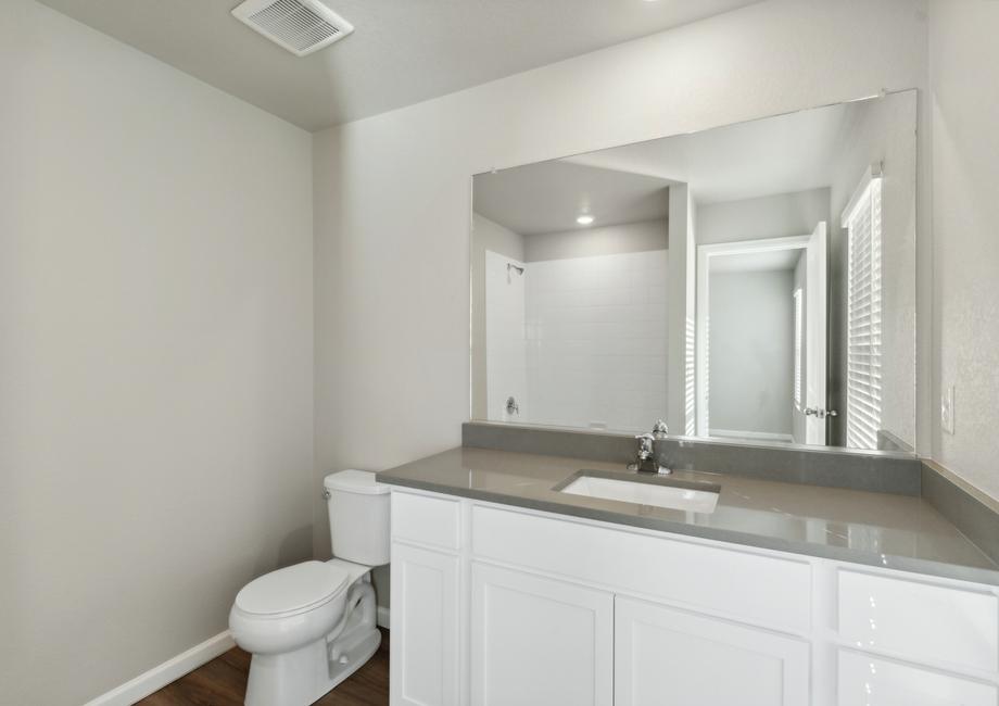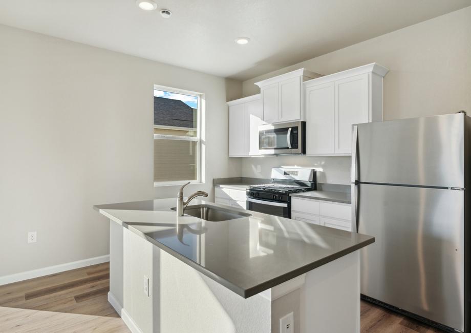 The Silverton floor plan is the perfect place to make dinners special. The upgraded kitchen is equipped with designer cabinetry, sprawling quartz countertops, energy-efficient appliances, a Moen® pull out sprayer faucet and a kitchen island that all make the prepping, cooking and cleaning experience much more enjoyable. Sitting adjacent to the kitchen is the spacious dining room that is the perfect space to make family dinners special.