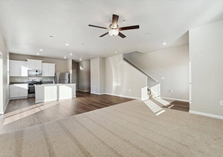 The family room of the Silverton is a great space to host family and friends. With plenty of space for furniture, there will always be space to sit and relax. Couple with the open-concept layout, this living room is the ideal place to host, no matter if you are enjoying a family movie night or inviting friends and family over for a Superbowl party.