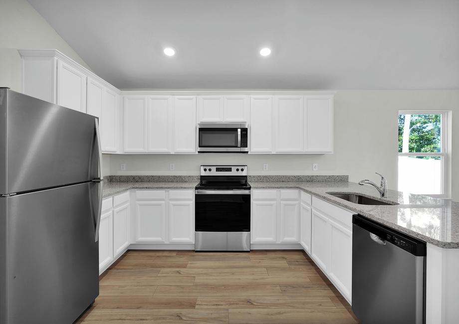 The grand entrance of the Hillcrest sets the tone for the elegance that awaits within. As you step inside, you are greeted by a spacious dining room, the perfect setting for hosting memorable gatherings with your loved ones. Whether it's a festive holiday feast or a simple family dinner, the dining room exudes a welcoming ambiance, fostering cherished moments and creating lasting memories. The heart of the Hillcrest lies in its gourmet kitchen, a true culinary haven for aspiring chefs and seasoned cooks alike. Overlooking the large family room, the open-concept design ensures you're always at the center of the action, allowing you to engage with family and friends while preparing meals. The kitchen features modern appliances, ample counter space, and elegant cabinetry, making meal preparation an enjoyable experience.