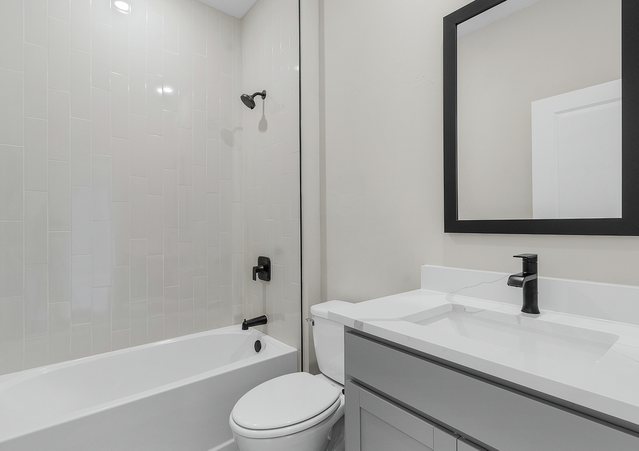 The spacious layout welcomes all who step in to gather and unwind. The heart of the home is complete with all new energy-efficient Whirlpool® appliances, including the refrigerator, oven, microwave and dishwasher. This chef-ready kitchen also boasts a walk-in pantry with plenty of storage space, as well as gorgeous quartz countertops and a kitchen island, overlooking the family room, dining room and covered back patio.