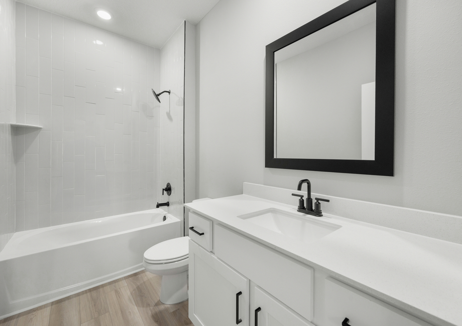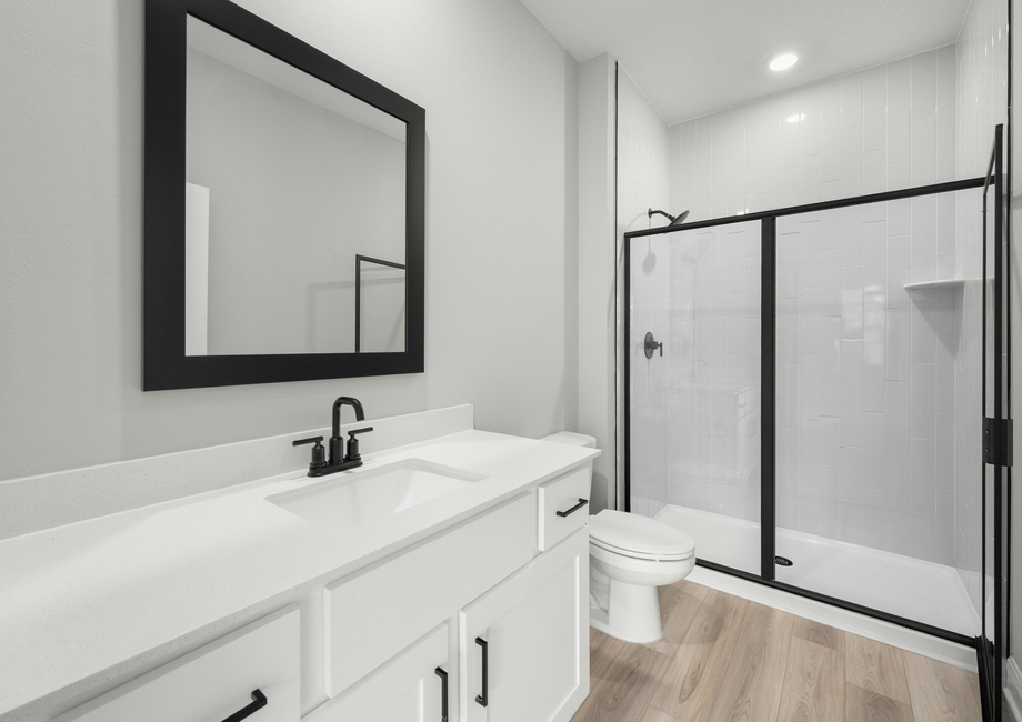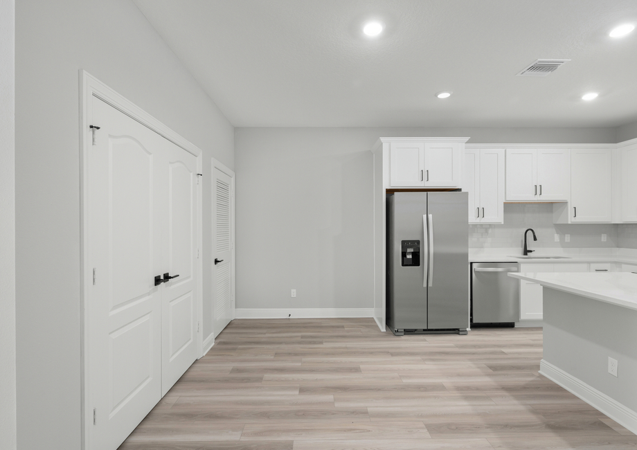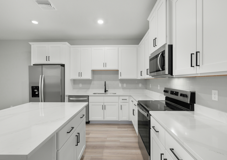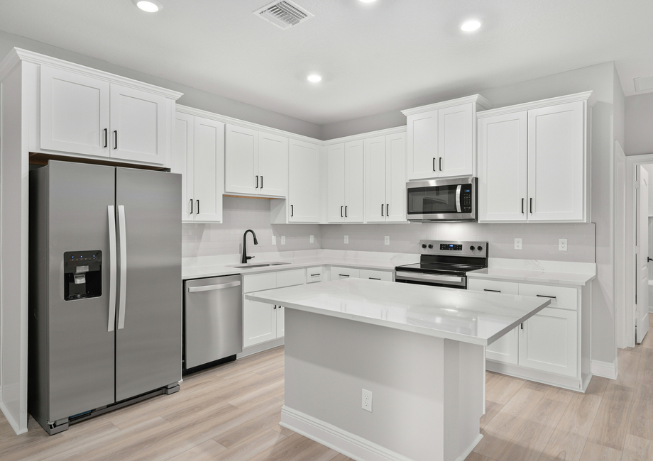 As part of our CompleteHome Plus™ package, the Carlo showcases modern style and convenience in every room. A full suite of stainless-steel Whirlpool® appliances are included in the kitchen, including the refrigerator, sprawling quartz-covered countertops, LED flush mount ENERGY STAR kitchen lights and more. In addition, a programmable thermostat, designer coach lighting and a Wi-Fi-enabled garage door offer even more value to homebuyers seeking all-inclusive upgrades at an affordable price.