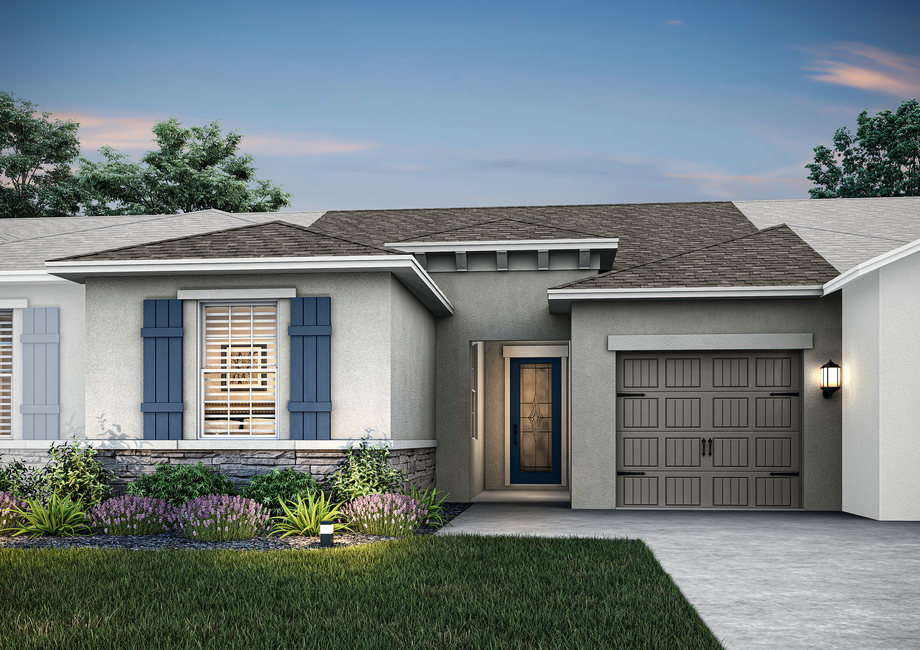 Exterior photo of the Carlo plan with landscaping and stone detail