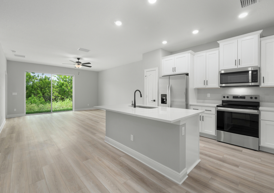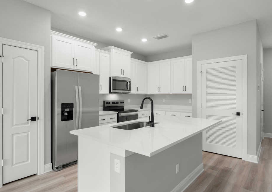 The Mateo floor plan will surpass expectations with remarkable upgrades included throughout the home. Found only in select communities, LGI Homes' CompleteHome Plus™ package is a modern take on even more style and convenience. The Mateo kitchen includes an array of stainless Whirlpool® appliances, such as the refrigerator, stunning quartz countertops, Moen® faucets and LED flush-mount ENERGY STAR kitchen lights. In addition, this open-concept floor plan features a back patio for additional entertainment space outdoors.