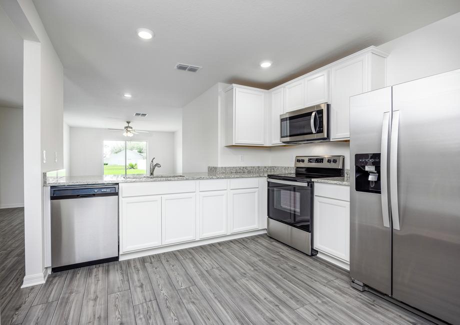 The Vero floor plan at Port St. Lucie was designed to surpass all expectations with a variety of upgrades included at no extra cost to you. As part of LGI’s CompleteHome™ package, a modern take on additional style and convenience is featured throughout the home. Upon moving in, LGI homeowners will be able to use the already-installed Whirlpool® appliances, such as the refrigerator, glass stove and microwave. Stunning granite countertops and 36” upper-wood cabinets with crown molding are just a few other remarkable upgrades that complete the heart of the home. In addition, a programmable thermostat, designer coach lighting, double-pane Low-E vinyl windows and a Wi-Fi-enabled garage door opener give even more features and finishes that today’s homebuyers are looking for.