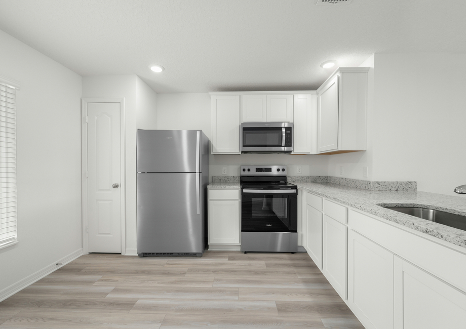 The Vero floor plan will surpass all expectations with its impressive upgrades. Homeowners will enjoy a suite of energy-efficient Whirlpool® appliances, grey granite countertops, and modern white cabinets in their chef-ready kitchen. The Vero will also include a programmable thermostat, designer coach lighting, double-pane Low-E vinyl windows and a Wi-Fi-enabled garage door opener. The Vero will provide homeowners with all features and finishes they are looking for at no extra costs as part of our CompleteHomeTM package.