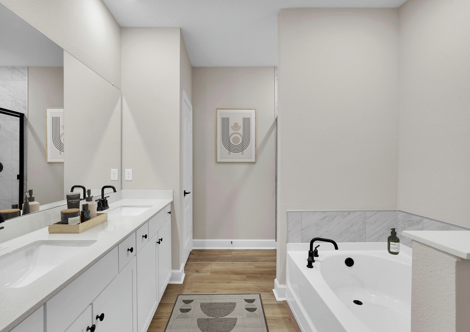 Indulge in the ultimate comfort within this exquisite master retreat, where a spacious walk-in closet seamlessly complements a luxurious full bathroom. Begin your day with ease amidst the generous amenities, including a sprawling walk-in closet, double-sink vanity, walk-in shower, and a relaxing garden bathtub, all thoughtfully designed for convenience and elegance.