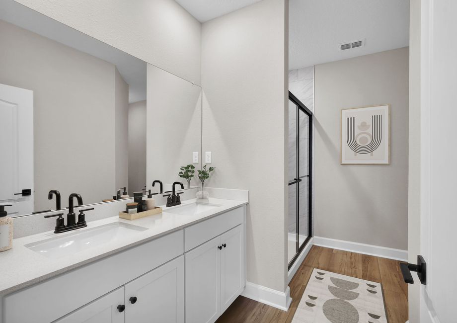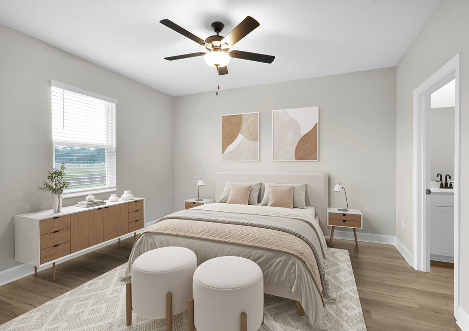 Indulge in the master suite in the Sunnyside, designed to be your ultimate sanctuary after a long day. This generously sized bedroom effortlessly fits king-sized furniture, offering ample room to unwind. Next to the bedroom, you'll find a spacious walk-in closet and a luxurious master bathroom featuring both a bathtub and shower.