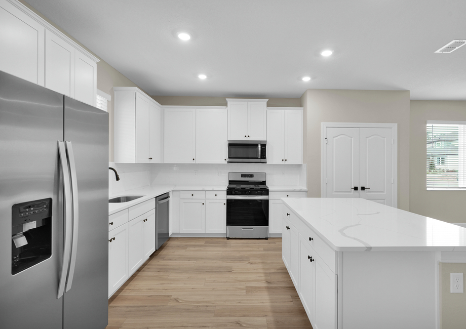 The Wayside’s kitchen is designed to impress, featuring LGI Homes’ exclusive CompleteHomePlus™ package with quartz countertops, Moen sink hardware, and stainless-steel appliances ready for move-in. This well thought out kitchen is a chef’s dream, offering both style and functionality.
