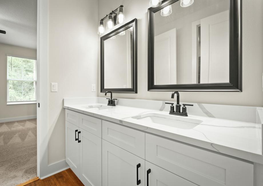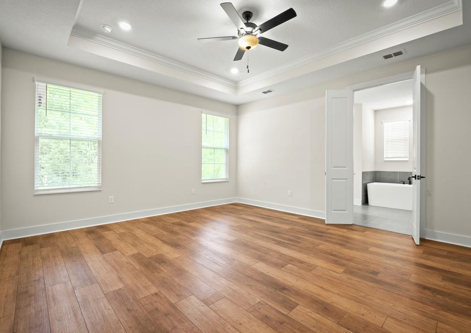 The master retreat of the Bradley plan is the perfect space to begin and end each day. Tucked away from the additional bedrooms, the master suite boasts a beautiful tray ceiling and plenty of natural light with views into the large back yard. The en-suite master bath showcases a gorgeous dual-sink vanity, glass-enclosed shower, a stunning free-standing tub and access to the spacious walk-in closet that conveniently connects to the laundry room.Remarkable Upgrades, All Included
