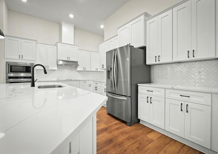The Bradley plan by Terrata Homes comes complete with a host of designer-selected upgrades and elegant features included at no additional cost to you. Inside every new construction home at Southern Pines, you will find a full suite of stainless steel kitchen appliances, including the refrigerator, sprawling quartz countertops, oversized white cabinetry with crown molding, gorgeous wood floors, blinds throughout and more.Community Amenities: