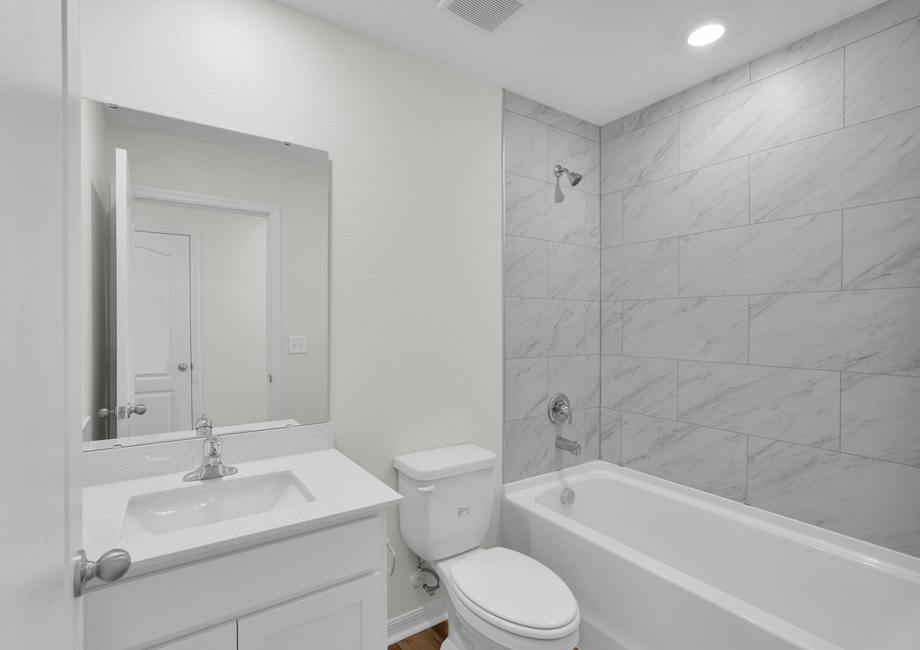 Dinnertime will be the family’s favorite time in this gorgeous kitchen and dining area. The chef’s in the family can whip up their favorite meals using the stainless steel Whirlpool appliances and the expansive prep space offered in the St. Martin. Make your plate and grab a seat in the front dining room where you can share your meals with family and friends.
