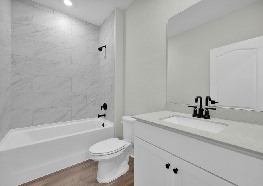 Unwind in the stunning master suite! This spacious bedroom connects to a spacious master bathroom featuring dual sinks and a combined shower and bathtub. Need more storage? The walk-in closet offers generous space for your entire wardrobe, from shoes to seasonal favorites.