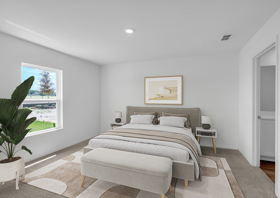 The master bedroom in the Sunnyside is a true retreat. Featuring a spacious walk-in closet, residents can enjoy ample storage and organization. The en-suite master bathroom offers a serene escape, complete with modern fixtures and a refreshing ambiance. The master bedroom provides a tranquil sanctuary for homeowners to unwind and rejuvenate after a long day, making it a true highlight of the Sunnyside floor plan.