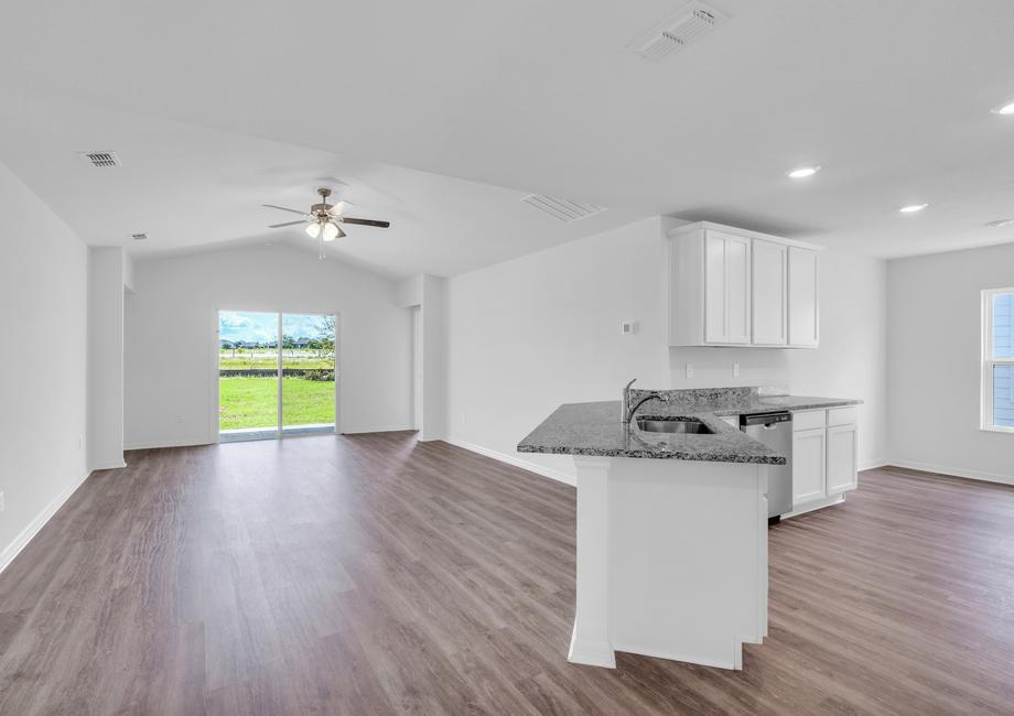 One of the standout features of the Sunnyside is its large covered back patio. This outdoor oasis invites residents to unwind and appreciate the beauty of their surroundings. Whether you're hosting a summer barbecue or spending quiet evenings watching the sunset, the covered back patio provides a welcoming space for outdoor relaxation. The seamless blending of indoor and outdoor living in the Sunnyside makes it perfect for those who appreciate the year-round Florida climate and seek to maximize their living space.