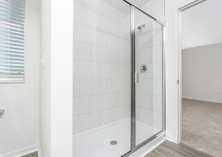 Double-pane windows fill the master bedroom with natural light, creating a bright and peaceful retreat. The spacious en suite bath features a dual-sink vanity and step-in shower, while the large walk-in closet provides plenty of storage. Every detail of the Driftwood plan by LGI Homes is designed for both comfort and functionality.