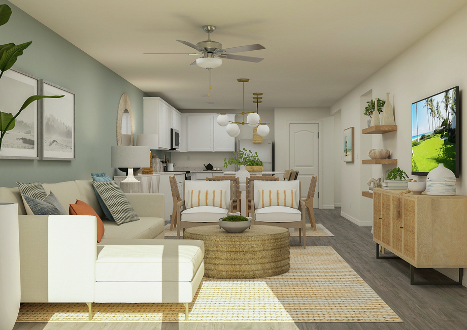 The Egret offers the perfect open-concept layout for your friends and family to create a lifetime of memories! Gather around the TV for movie nights or host competitive game nights in the spacious family room. The chef-ready kitchen and adjoining dining room are the perfect place for your friends and family to gather and share meals and stories together. After dinner, unwind under the lanai.